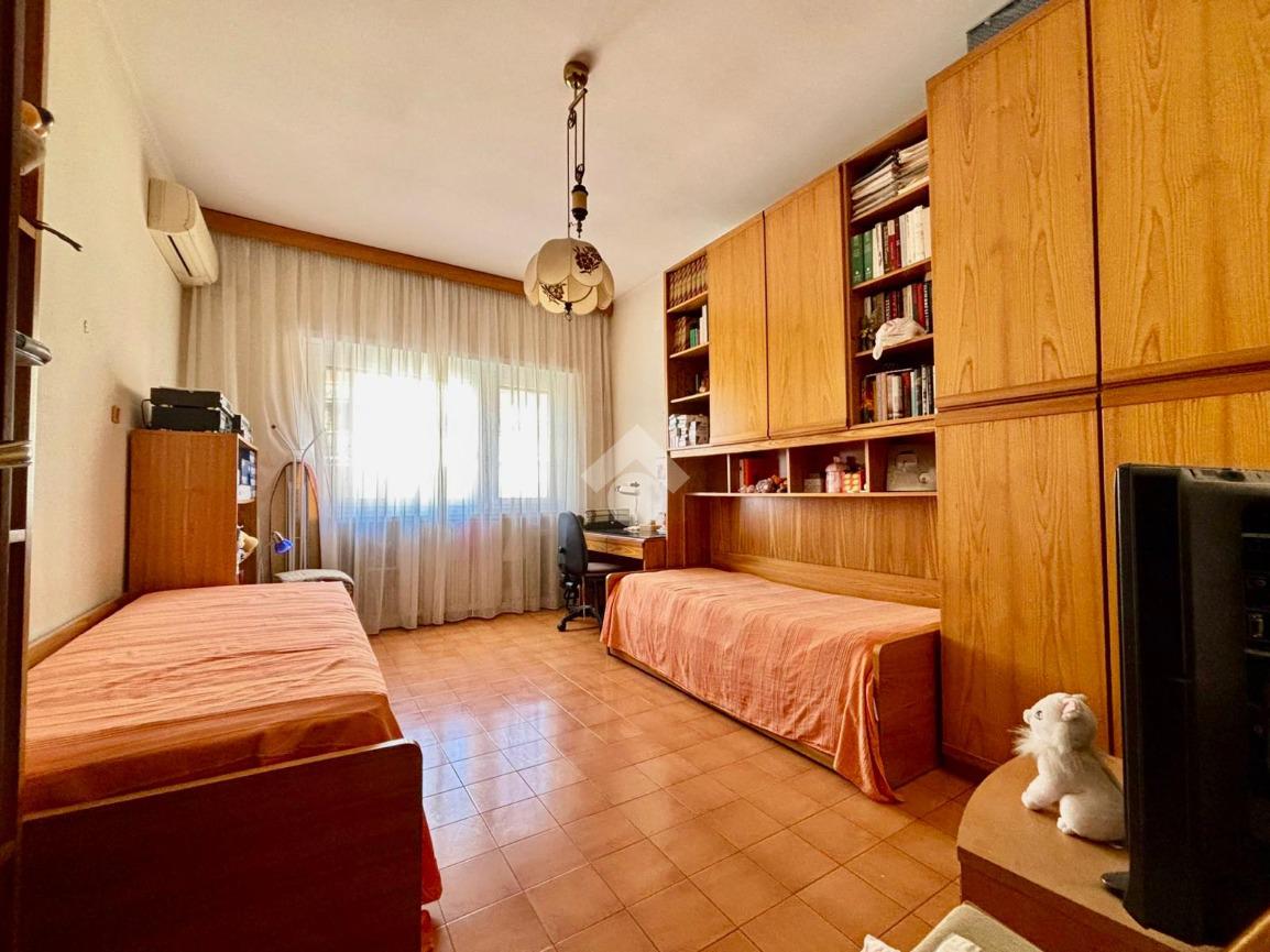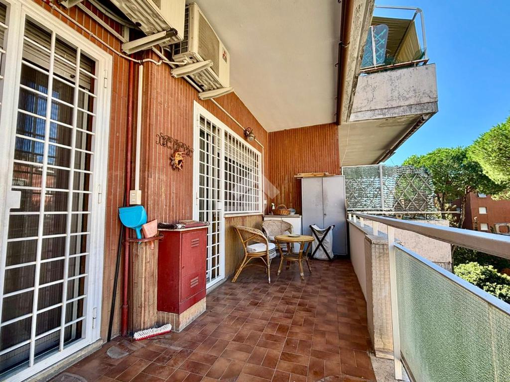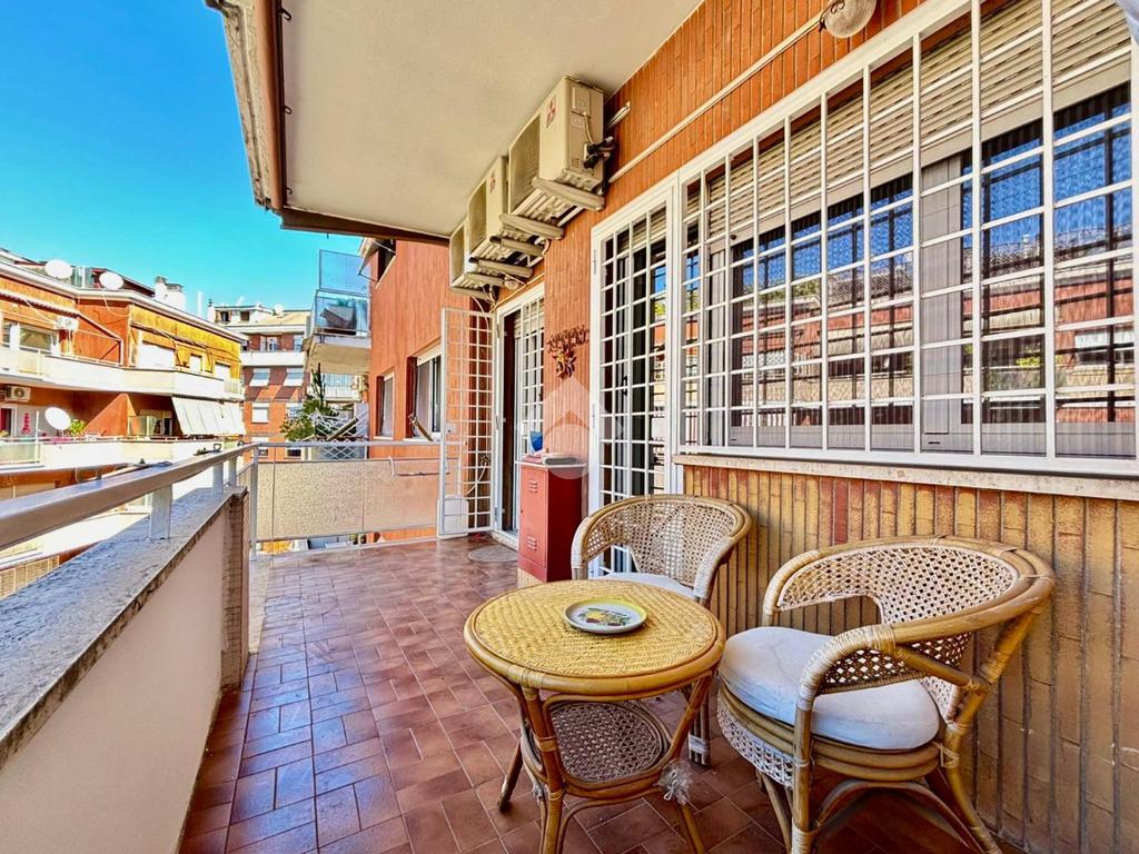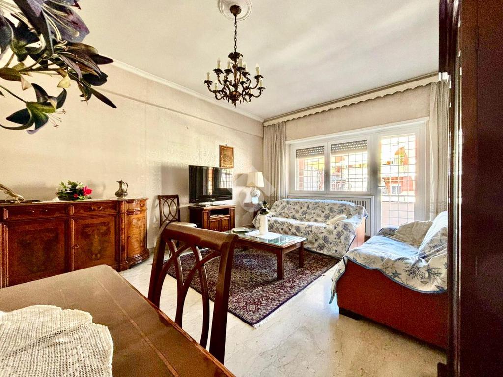 Internamente l'immobile è in buono stato, dotato di impianto di climatizzazione e infissi in doppio vetro pvc. Si compone di ingresso, salone, cucina, due camere, studio, doppi servizi entrambi finestrati e un terrazzo.
