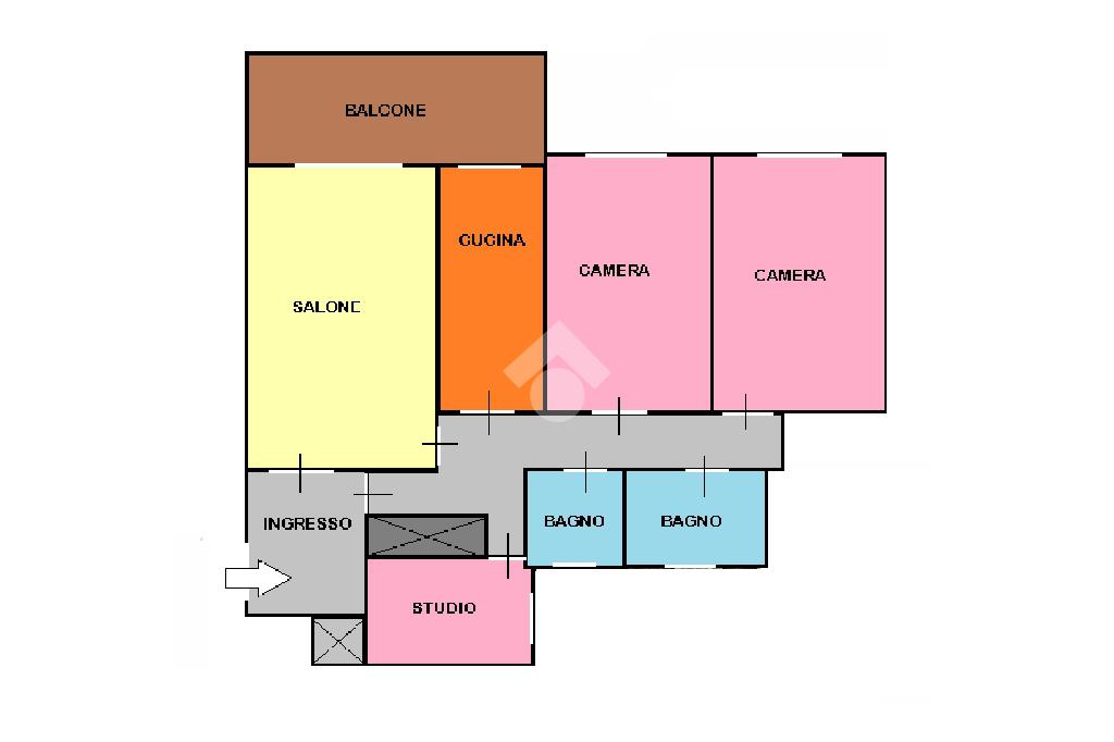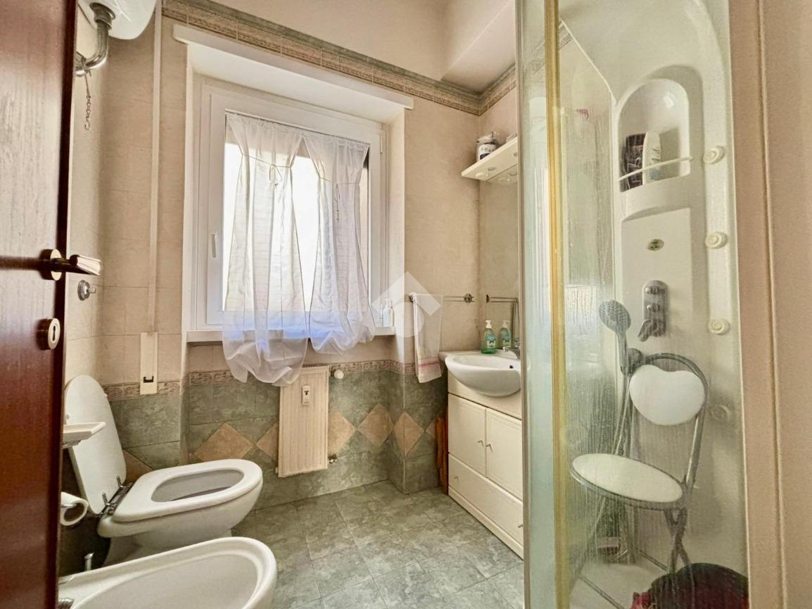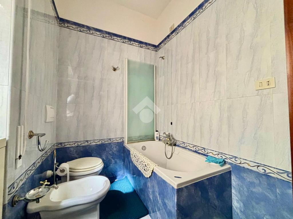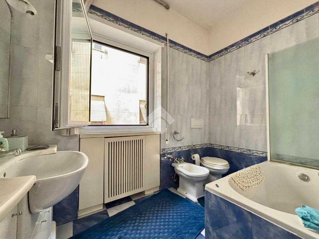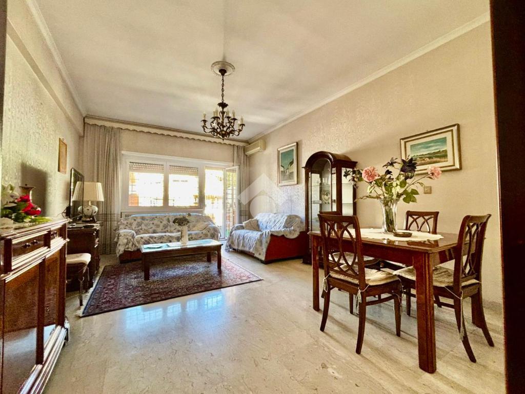 Internamente l'immobile è in buono stato, dotato di impianto di climatizzazione e infissi in doppio vetro pvc. Si compone di ingresso, salone, cucina, due camere, studio, doppi servizi entrambi finestrati e un terrazzo.