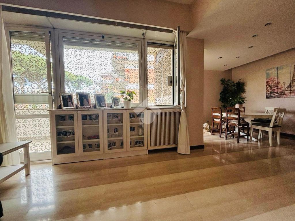 Elegante stabile in cortina la vendita di un appartamento estremamente luminoso con tripla esposizione, posto al secondo piano alto con affaccio aperto e silenzioso in uno stabile di quattro. Il contesto è riservato e signorile, arricchito da curate aree verdi condominiali . L' immobile è così composto: ingresso con ampio ripostiglio, il salone doppio, dotato di ampie vetrate che donano alla zona giorno una preziosa luce naturale, da accesso al terrazzo vivibile che gode di una esposizione silenziosa ed un affaccio aperto, questo ampio spazio esterno e' prezioso per condividere momenti di convivialità all'aperto; nella ampia zona giorno troviamo la cucina abitabile con tinello, uno studio, un bagno e una comoda zona lavanderia. Proseguendo nella zona notte abbiamo il disimpegno soppalcato che ci conduce alle due spaziose camere da letto, armadiature, il bagno padronale, entrambi i servizi sono finestrati.